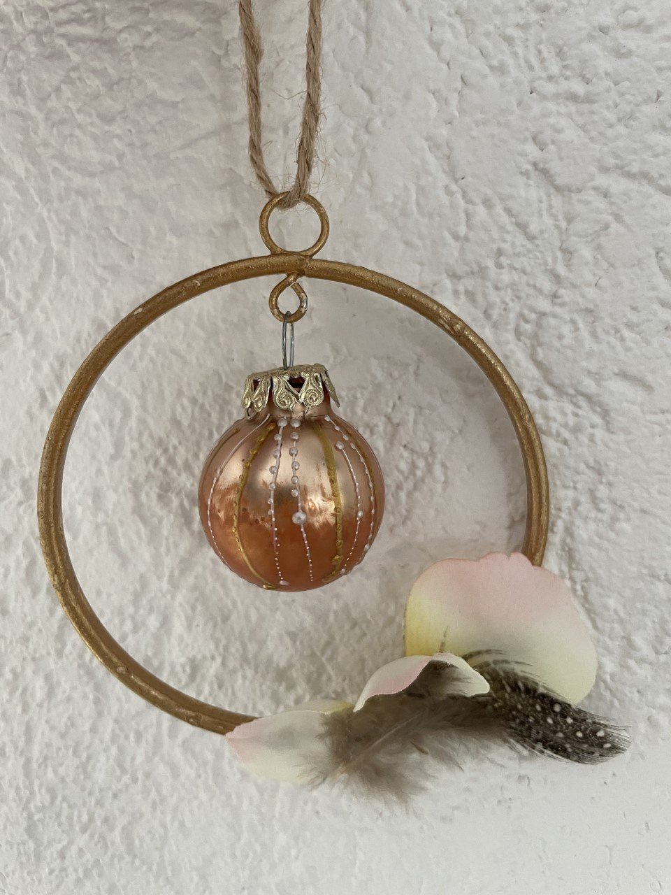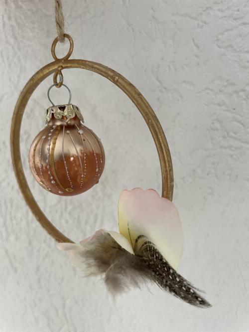 Décoration avec boule de Noël peinte à la main et vernie.