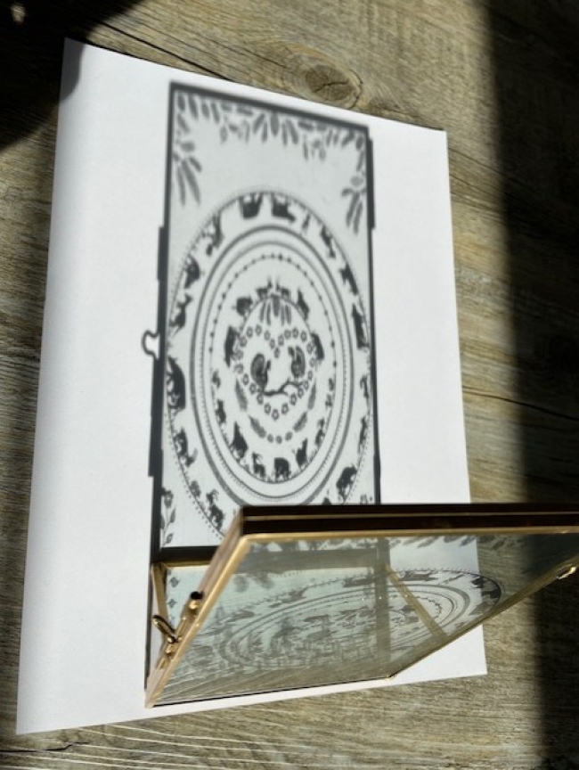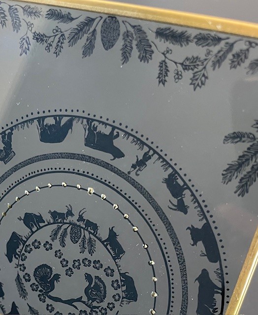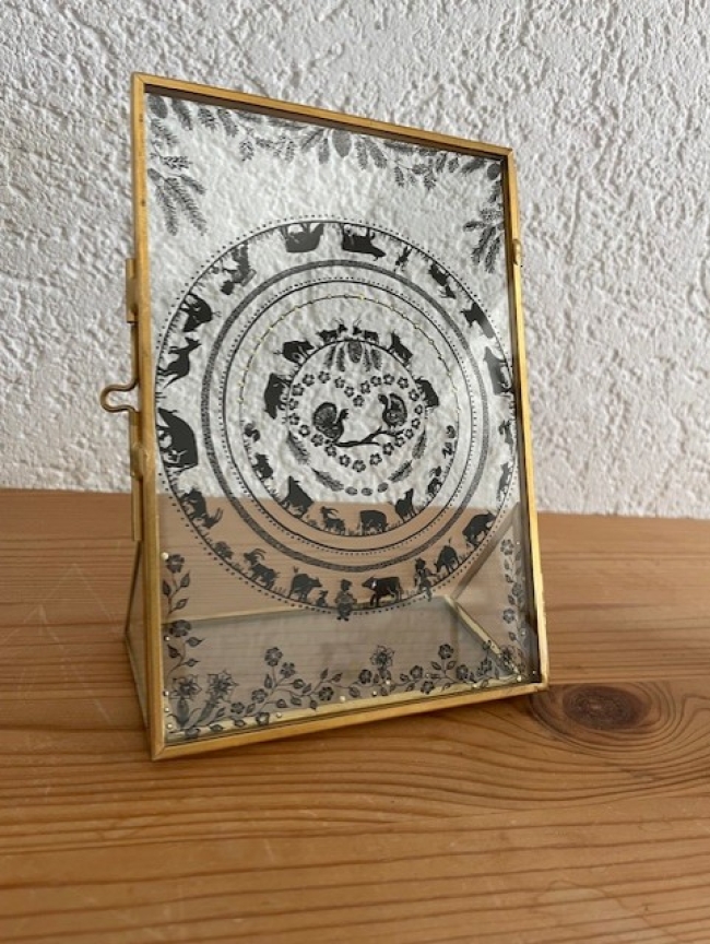 Tableau peinture sur verre, cadre doré, 16 x 11 cm.