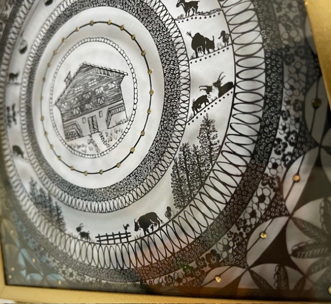 Tableau peinture sur verre Le Fabulous, cadre doré, 15 x 15 cm.