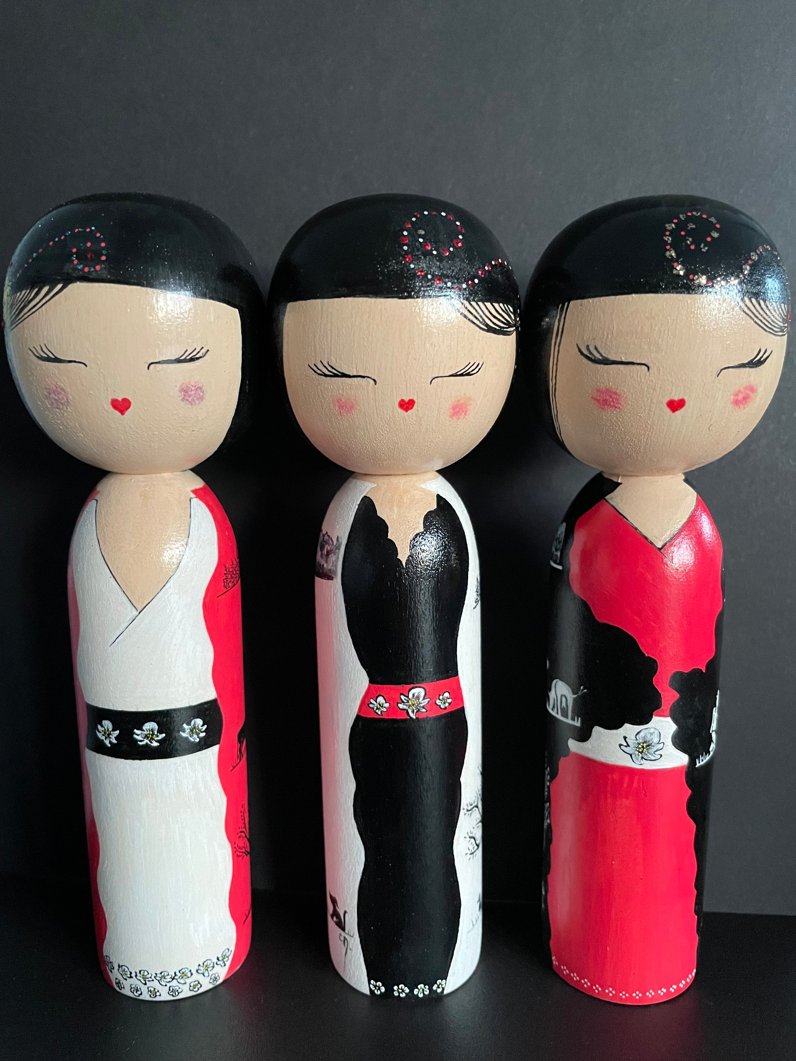 Peinte à la main sur bois japonais et vernie, la sweet kokeshi est une représentation de la douceur et de la finesse. Pièce numérotée et message à ses pieds. Elle est traditionnellement offerte au Japon en démonstration d'amour et d'affection envers la personne qui la reçoit.